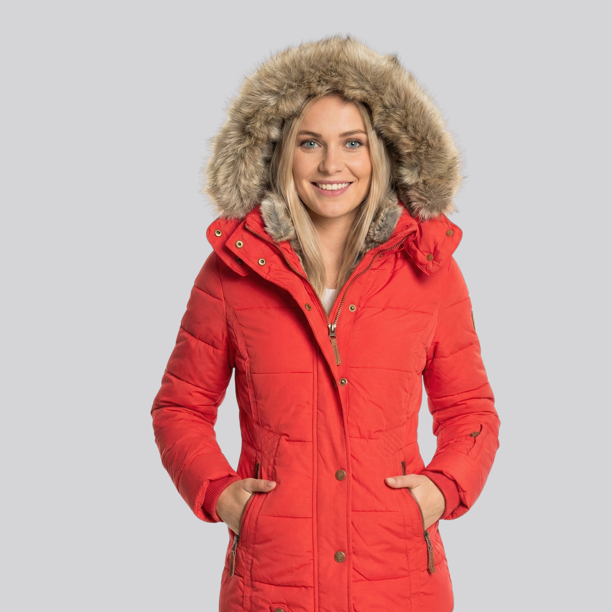 Pikowana kurtka z kapturem, wyściełana gęstą imitacją futra, która zapewnia wyjątkową izolację oraz miękkie, otulające ciepło. Smukła, pikowana sylwetka, zapięcie na napy i zamek oraz skośne kieszenie dodają jej struktury i funkcjonalności w chłodne dni. Zaprojektowana z myślą o jesiennym warstwowaniu, oferuje solidne ocieplenie przy zachowaniu taliowanego wyglądu. Dla najlepszego dopasowania polecamy wybrać rozmiar większy.